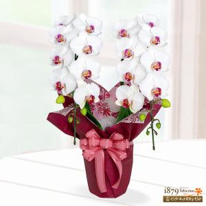 【母の日 産直花鉢植え】花キューピット【日付指定可】 母 祖母 プレゼント 母の日 ミディ胡蝶蘭 白赤系 2本立(ラッピング)