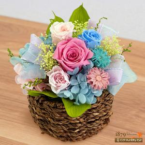 【母の日プリザーブドフラワー】花キューピット【日付指定可】 プレゼント 母の日 誕生日 ピンクバラの爽やかなプリザーブドフラワーバスケット
