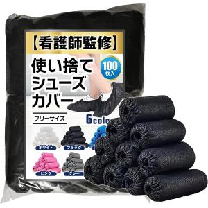 現役看護師監修 使い捨て シューズカバー 靴カバー 不織布 100枚入り 上履き代わり 工場見学 黒(ブラック, Free Size)