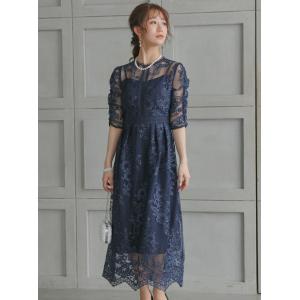 パーティードレス 結婚式 二次会 服装 親族 披露宴 謝恩会 卒業パーティー ゲストドレス レースドレス 20代 30代 40代 プリカ 3-5203 ネイビー