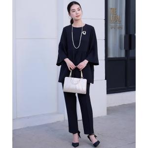 パンツ スーツ レディース セレモニー 入学式 ママスーツ 卒業式 合繊×ジョーゼットノーカラー3点セットスーツ(ジャケット ブラウス パンツ)(エコ包装)(st)(hw)