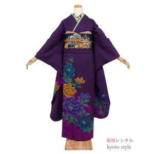 振袖レンタル 成人式 フルセット 結婚式 パーティー 結納 お正月 振袖レンタル 大正ロマン 紫 牡丹 貸衣裳 着物 レンタル 個性的 女性 かっこいい 72103