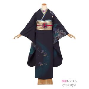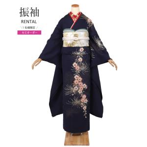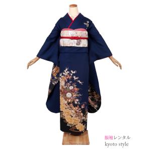 振袖レンタル 成人式 紺 ネイビー フルセット 結婚式 パーティー 振袖 レンタル 貸衣裳 着物 レンタル 柄少なめ レトロ 女性 薔薇 バラ 72156