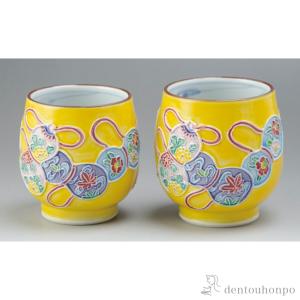 黄交趾六瓢 組湯呑 ペア ( 名入れ有料 湯呑み 湯のみ セット 湯飲み おすすめ 清水焼 京焼 結婚 出産 内祝い 引き出物 金婚式 誕生日プレゼント )