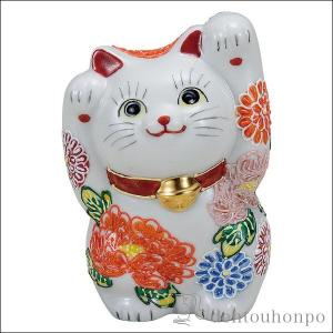 招き猫 花大輪 4号 ( 退職祝い 定年 置物 幸運 開運 まねきねこ 風水 九谷焼 結婚 出産 内祝い 引き出物 金婚式 誕生日プレゼント 還暦祝い 古希 喜寿 )