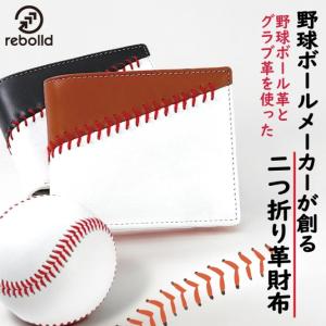 野球ボール革×グラブ革 二つ折り財布 ツートンカラー 【カラーバリエーション2種類】 野球グッズ