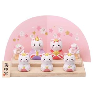 雛人形 コンパクト 陶器 小さい 可愛い/ 錦彩ねこ飾り雛(平飾り) /ミニチュア 初節句 お雛様 おひな様