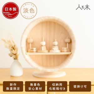 雛人形 白 木製 おしゃれ コンパクト モダン インテリア ひな人形 初節句 桃の節句 収納飾り ひな飾り 天然木 国産 手作り 可愛い 木 玄関 円形台座雛飾り 淡色