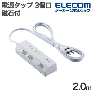 エレコム 電源タップ 個別スイッチタップ 3個口 2m 雷サージ付き ホコリシャッター付き 磁石付き ホワイト ECT-35M20WH