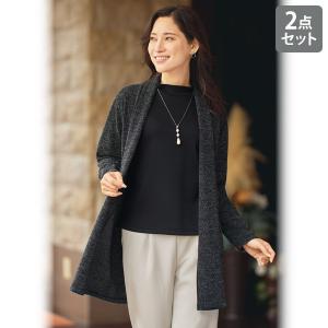 アンサンブル カーディガン レディース おしゃれ 秋冬 40代 50代 60代 70代 ミセス シニア ファッション 異素材 カットソー アンサンブル