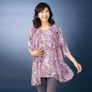 アンサンブル ギフト 母の日 敬老 50代 60代 70代 80代 ミセス シニア 大人 おしゃれ レディース プリントインナー使いアンサンブル◎