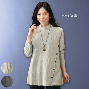 プルオーバー トップス レディース おしゃれ 秋冬 ミセス シニア ファッション 40代 50代 60代 70代 80代 ボタン使いデザインロングプルオーバー