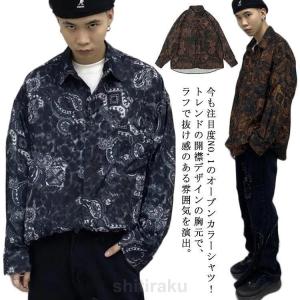 シャツ メンズ ブランド 総柄シャツ プリント 長袖 長袖シャツ ゆったり カジュアルシャツ ドレープ 大人 きれいめ カラフル 韓国ファッション と