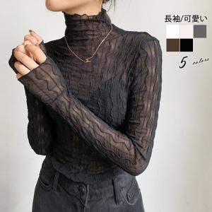 トップス レディース ハイネック レイヤード インナー 重ね着 韓国ファッション レース Tシャツ 薄手 細身