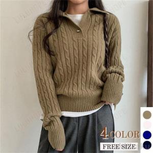 レディース 韓国ファッション ニット Vネック ケーブルニット セーター 長袖 トップス カジュアル 大人女子 チック 学生 ママコーデ スタイリッシュ デイリー