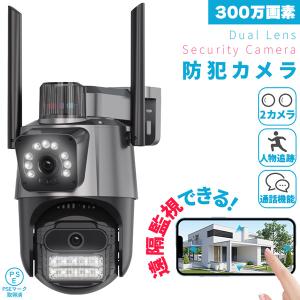 防犯カメラ 屋外 家庭用 wifi 有線 2カメラ デュアルカメラ 屋外カメラ パン チルト ナイトカラービジョン 暗視カメラ スピーカー 音声 録音
