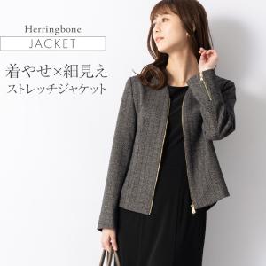 ノーカラージャケット レディース 長袖 秋冬 ヘリンボーン out010039 洗える きれいめ 40代 50代 着やせ 上品 エレガント ヒップアップ