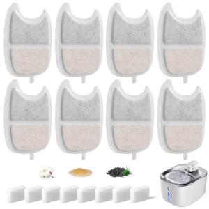 Hantoc 猫 犬 給水器 交換用フィルター 8セット交換用スポンジ付き 軟水化フィルター 純正活性炭+イオニック スマートペット用 フィルタ