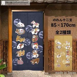 のれん ロング 和風 モダン 暖簾 和柄 85cm幅 170cm丈 間仕切りカーテン 十二支 紺 黄色(10616 10617)