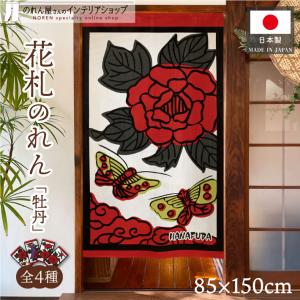 のれん 花札 花かるた 85cm幅 150cm丈 4種 暖簾 和風 間仕切り 牡丹に蝶 牡丹に青短 牡丹 カス(受注生産 26736 26737 26738 26739)