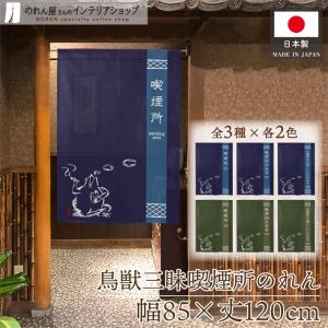 のれん 鳥獣戯画 喫煙所 鳥獣三昧 85cm幅 120cm丈 喫煙 喫煙OK たばこ タバコ 暖簾 ノレン 紺 モスグリーン(受注生産 28730~)