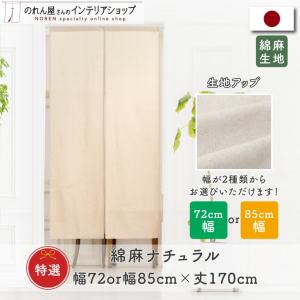 のれん ロング 無地 綿 麻 和風 洋風 85cm幅 72cm幅 170cm丈 特選綿麻 暖簾 間仕切りカーテン シンプル ナチュラル ベージュ(99851 99853)