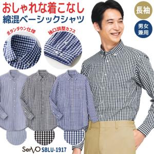 長袖シャツ ボタンダウン ギンガムチェック ストライプ カジュアル 接客業 飲食店 レストラン カフェ ベーカリー 吹奏楽 オフィス 事務服 サーヴォ sv-sblu1917