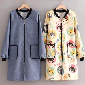 エプロン 割烹着 動物柄 保育士 飲食店 かっぽう着 可愛い おしゃれ 冬 後ろ開き 袖付き 袖口ゴム ポケット付き チュニック 母の日 プレゼント