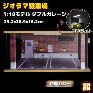 ジオラマ駐車場 モデル 1:18 ダブルガレージ おもちゃ LEDライト 木製 ミニ駐車場 ディスプレイ