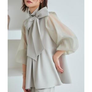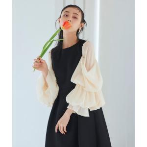 ルイルエブティック RUIRUE BOUTIQUE 【オケージョン対応】オーガンジースリーブタックフレアトップス&シークレットゴム・スリムテーパードパ