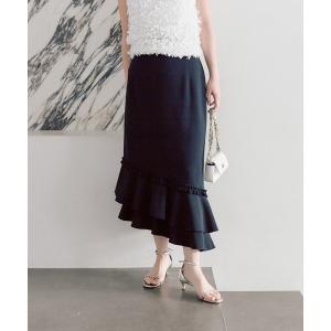 スカート 「今すぐお届け!・美シルエット」アシメラッフルジャージマーメイドスカート