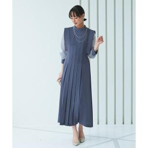 ワンピース ミックスツイードコンビ・ロングナローワンピースドレス