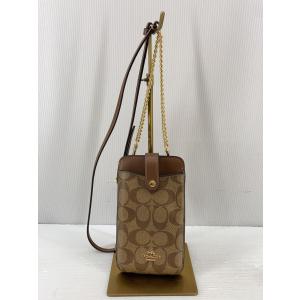 COACH◆スマホショルダーバッグ/レザー/BRW/総柄/C7397IMBDX//