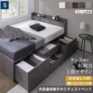 ベッド シングルベッド 大容量 チェストベッド 収納付き 引き出し 4杯 ベッドフレーム 宮付き コンセント付き すのこ 幅98cm 「才:10」