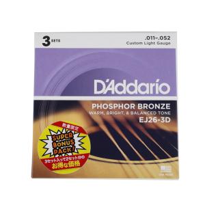3セットパック D'Addario EJ26-3DBP 11-52 Custom Light アコースティックギター弦 3セット入りパック