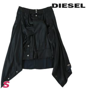 ディーゼル DIESEL 膝丈スカート レディース オーバルDメタルロゴ シルク混サテン 腰巻きスタイル フェイクシャツ O-SUZ
