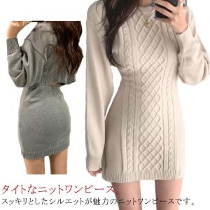 バック開き タイト 大人 スリム ニットワンピース 秋冬 ワンピース ひざ上 ワンピース フィット 長袖 クルーネック レディース カジュアル 背中開