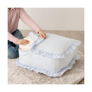 収納 クッションになるふとん収納ケース シアーチェックフリル ライトブルー