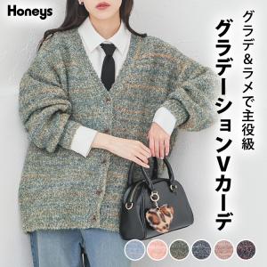 トップス カーディガン 長袖 Vネック グラデーション 再生ポリエステル ラメ糸入り フロントボタン レディース Honeys ハニーズ グラデーションVカーデ