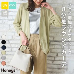 トップス カーディガン ハニさら 大きいサイズ ラウンドカーデ UVカット 接触冷感 抗菌防 SALE Honeys ハニーズ 8分袖ラウンドカーデ
