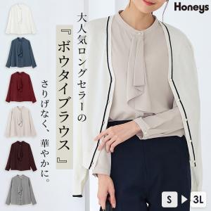 トップス ブラウス 大きいサイズ オフィス きれいめ ボウタイブラウス ボウタイ 無地 レディース SALE Honeys ハニーズ 7分袖ボウタイブラウス