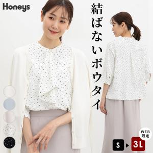 トップス ブラウス 長袖 大きいサイズ オフィス きれいめ 再生ポリエステル ボウタイ フロントボタン レディース Honeys ハニーズ ボウタイブラウス
