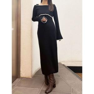 ワンピース 3WAY配色ストラップバッククロスロングスリーブワンピース