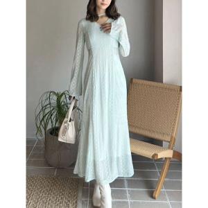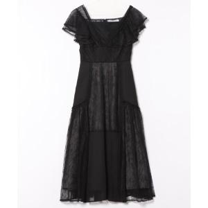 ワンピース カットレースブロッキングフレアスリーブマーメイドワンピース