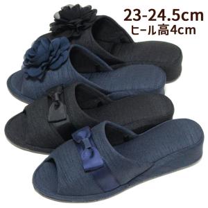 ヒールスリッパ サテン リボン ブーケ 23-24.5cmくらいに対応 ヒール高約4cm 室内 フォーマル 黒 紺 おしゃれ 学校 授業参観 入学式 卒業式 保護者用 ママ PTA
