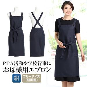 エプロン レディース 学校行事 参観日 幼稚園 PTA 文化祭 バザー お手伝い 大きいサイズ 母 母親 紺 無地 フォーマル ネイビー AP-151 ゆうパケット対応