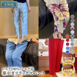 華やぎリラックスパンツ シルク100% ルームパンツ 女性用 ノンアイロン ボトムス 肌に優しい 美肌 防臭 ギフト 秋冬 暖かい バレンタイン