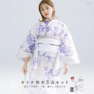 レディース 浴衣セット 簡単(ゆかた・しわ兵児帯・下駄・着付け本・腰ひも)綿 紫 青 白 花柄 水彩 儚げ 淡い 大人 上品 水色 10代 20代 30代 2025年