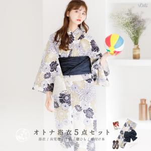 レディース 浴衣 セット 簡単(ゆかた・しわ兵児帯・下駄・着付け本・腰ひも)綿 レトロ 青 白 紺 花 モダン 大人 上品 派手 10代 20代 30代 2025年