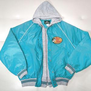 USA製 バスプロショップス スタジャン M ナイロンジャケット ワッペン ブラックバス フード レイヤード Bass Pro Shops ターコイズブルー系